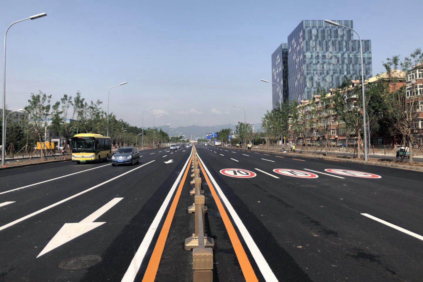 長(zhǎng)安街西延線(xiàn)工程?hào)|起石景山區(qū)古城大街,向西經(jīng)首鋼主廠(chǎng)區(qū)、上跨豐沙鐵路、永定河及六環(huán)路至門(mén)頭溝區(qū)三石路,全長(zhǎng)約6.4公里。長(zhǎng)安街西延工程道路標(biāo)準(zhǔn)為城市主干路,紅線(xiàn)寬60至100米,古城大街至六環(huán)路西側(cè)路安排4上4下8條機(jī)動(dòng)車(chē)道,包括外側(cè)兩條公交專(zhuān)用車(chē)道,六環(huán)路西側(cè)路至三石路為包含兩條公交專(zhuān)用道的3上3下6條機(jī)動(dòng)車(chē)道。長(zhǎng)安街西延道路橫跨永定河,新建跨永定河特大橋一座。長(zhǎng)安街西延道路的輔路系統(tǒng)及雨水、綠化、照明、交通工程、環(huán)保、工程改移等工程同步實(shí)施。長(zhǎng)安街西延跨永定河大橋景觀(guān)性標(biāo)志建筑——雙塔斜拉和剛構(gòu)組合體系橋“和力之門(mén)”,橋梁全長(zhǎng)1230米,斷面寬度47米,橋梁總面積5.82萬(wàn)平方米。